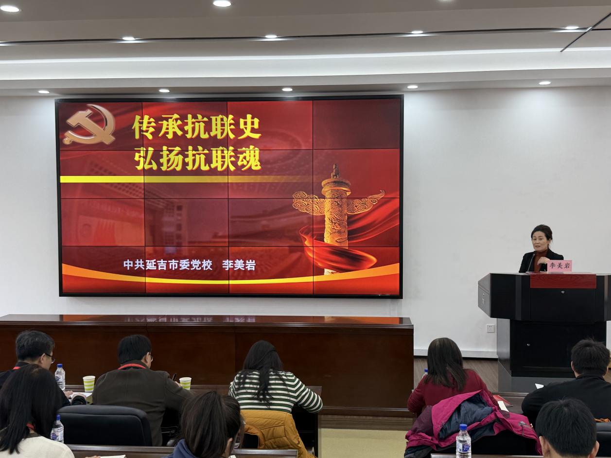 中共延吉市委党校李美岩老师以《传承抗联史·弘扬抗联魂》为题讲授专题党课,通过珍贵史料与鲜活案例,系统讲述了东北抗日联军在白山黑水间浴血奋战的峥嵘岁月。介绍了杨靖宇、魏拯民、童长荣、赵一曼等抗日英烈的崇高事迹,深入阐释了东北抗联精神的核心内涵——忠诚于党的坚定信念、勇赴国难的民族大义、血战到底的英雄气概。