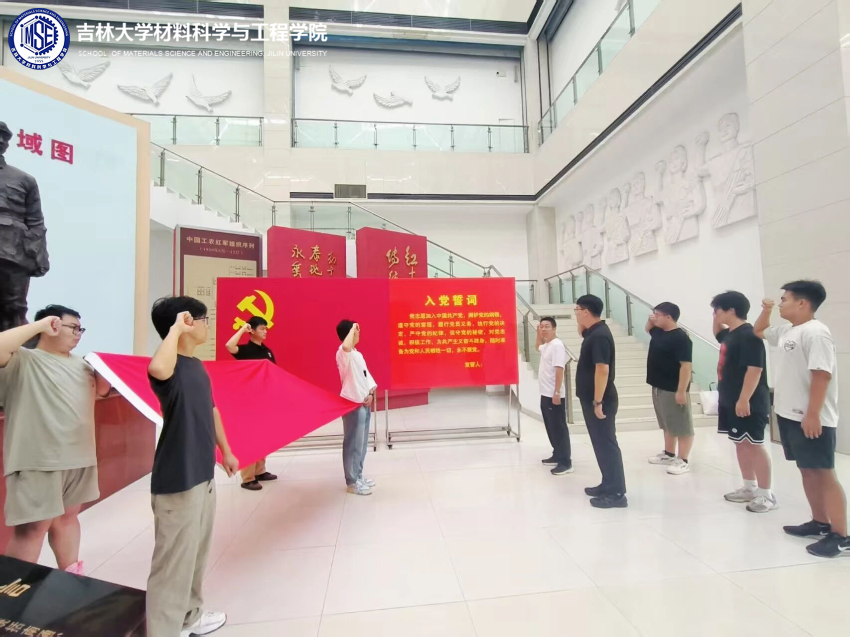 当参观接近尾声时,纪念馆内的每一件展品都静静地诉说着那段峥嵘岁月中的悲欢离合与家国情怀,全体师生无一不被红十四军的革命历程和英雄事迹所感动。在红十四军无畏牺牲的革命历史精神引领下,师生党员共同重温了入党誓词。